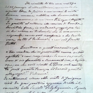 Ho ricevuto le tue care notizie del 28 Gennaio ed altre ulteriori, come anche ho ricevuto la lettera da Giulio e cosi mercè le vostre buone nuove relative alla buona salute della mamma io mi sono tranquillizzato. In quanto al ritorno alla carica di Davide lasciatelo fare, io credo sarà necessario e che decida una volta il tribunale e cosi sarà finito tutto.